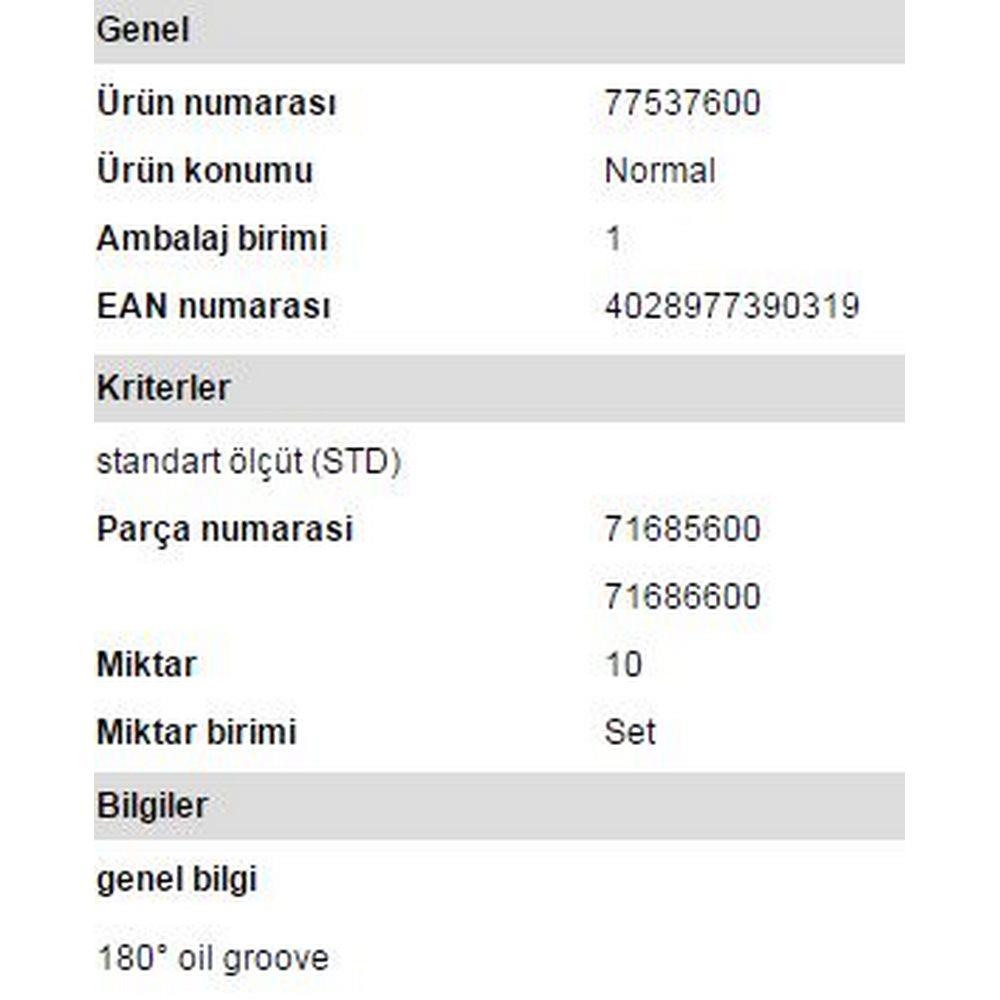 Ürün Kodu: MAHLE 029HS20560000 Marka: MAHLE MOTOR Eşdeğer Liste: KOLBEN 77537600