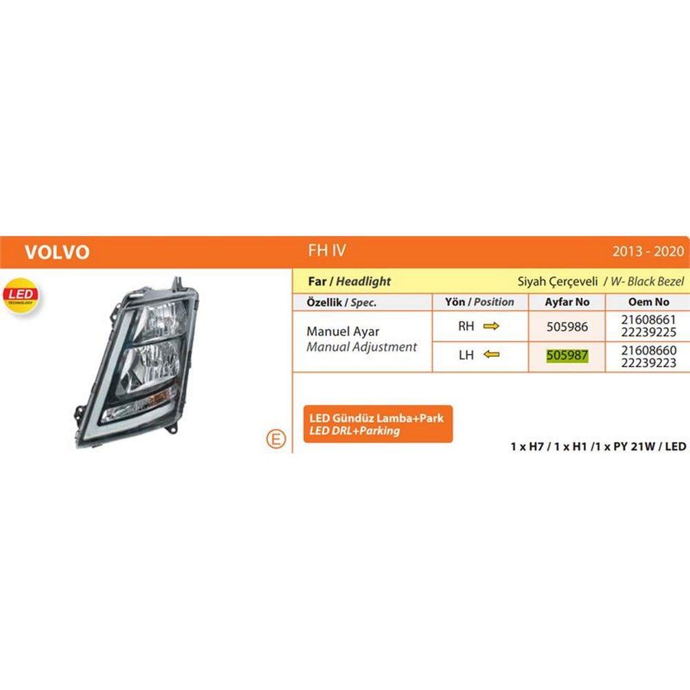 FAR MANUEL SOL - SIYAH CERCEVELI VOLVO FH IV (2013- 20)