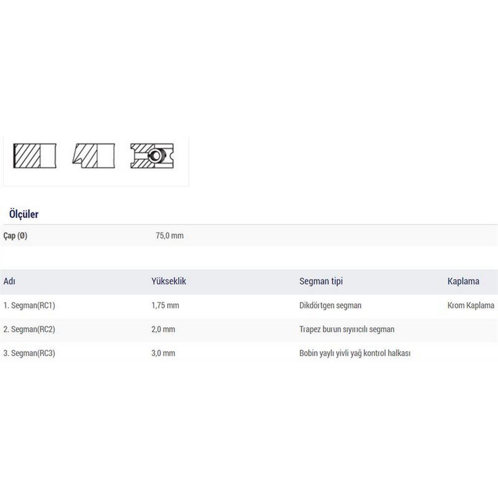 MOTOR SEGMAN P205 P106 P206 TU3JP (1,4 8V) / (75,00MM) (STD) OLCU: (1,75 * 2 * 3)