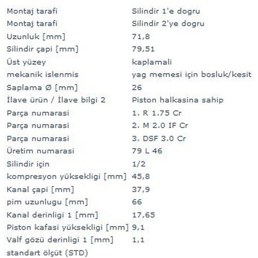 PISTON+SEGMAN (79,51mm STD 1 2 PISTONLAR) BORA CADDY II GOLF III IV BEETLE PASSAT POLO / CLASSIC SHA