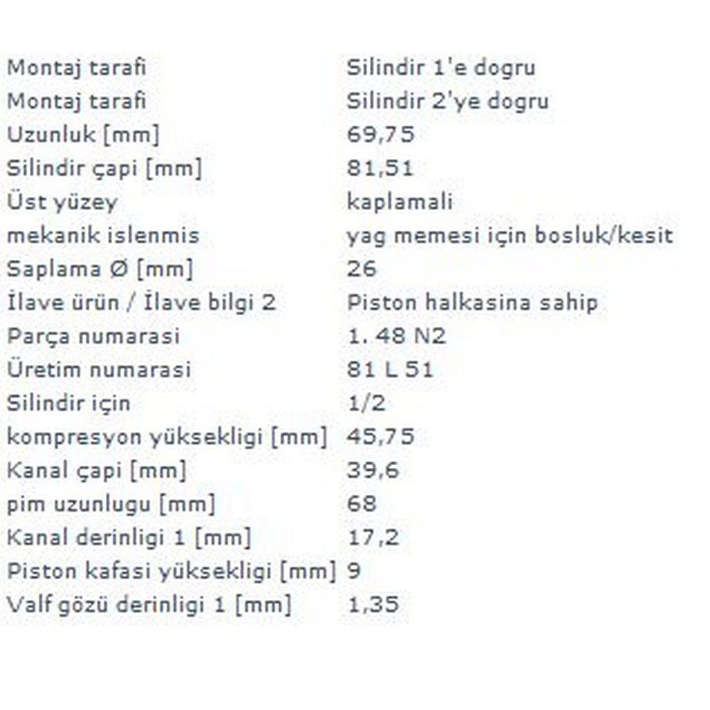 PISTON+SEGMAN 81,01MM (0,5MM FARKLI)  2,5TDI ACV/ANJ LT46 AHD 5CYL 1.2.PISTONLAR
