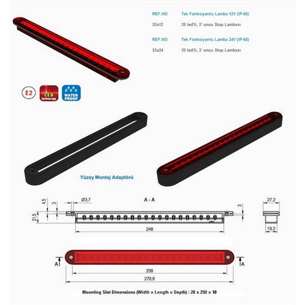 STOP LAMBASI 12V 3,STOP 20 LEDLI SU GECIRMEZ E ONAYLI