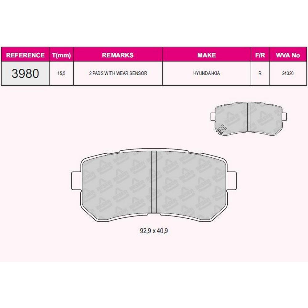 ARKA FREN BALATASI HYUNDAI ACCENT ERA 06> / I20 08>15 / I30 07>12 / IX20 IX35 10> / SONATA 10>14 / K