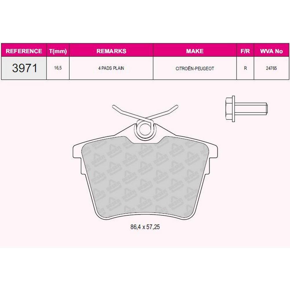 ARKA FREN BALATASI P308 SW P307 1,4 16V / 1,6 16V / 2,0 / 1,6HDI / 2,0HDI 09 / 07> PARTNER TEPEE C4
