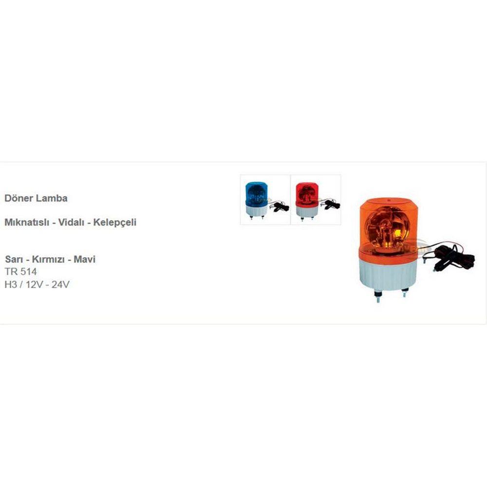 DONER TRAFIK IKAZ LAMBASI MIKNATISLI 12V AMPULLU (KIRMIZI)