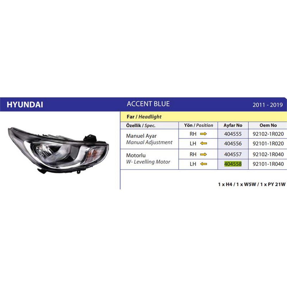 FAR SOL HYUNDAI ACCENT BLUE 11>15 (MOTORLU)
