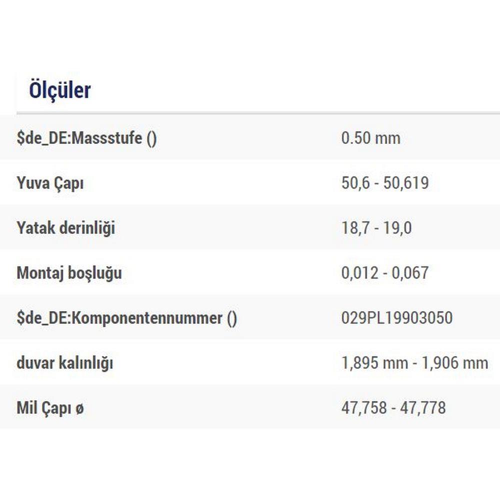 KOL YATAK 0,50 1,9TDI / TD / TDI 1Z AAZ ADE AFF AGR AHH AHU ALH AEY AGP ABL AFD AGD ALE ARD ASX AVM