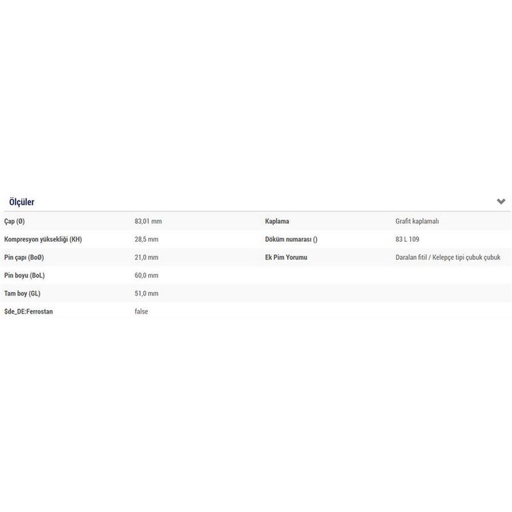 MOTOR PISTON SEGMAN 83,01mm STD FOCUS / CMAX / MONDEO 1,8 BENZINLI 00 /