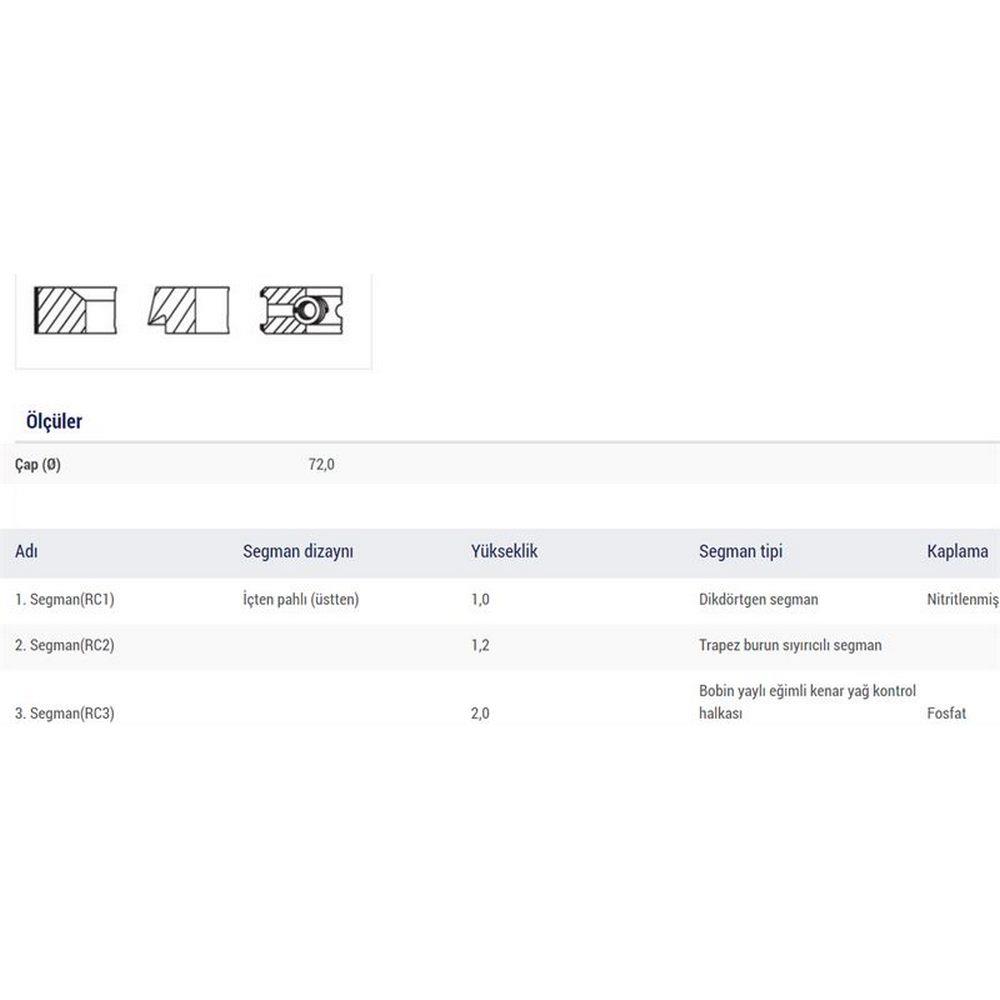 MOTOR SEGMANI PUNTO II STILO IDEA DOBLO PUNTO FIAT 500L 1,4 8V 90HP (72,00mm) / (STD) (1,00*1,20*2,0