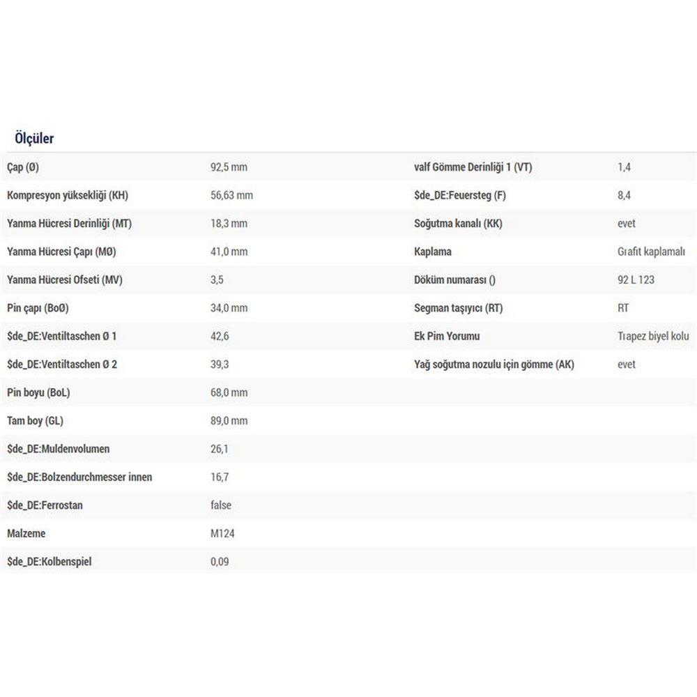 PISTON SEGMAN BOXER JUMPER DJ5TED (2,5 TURBO 8V) / (92,50MM) / (0,50 FARKLI) < 00