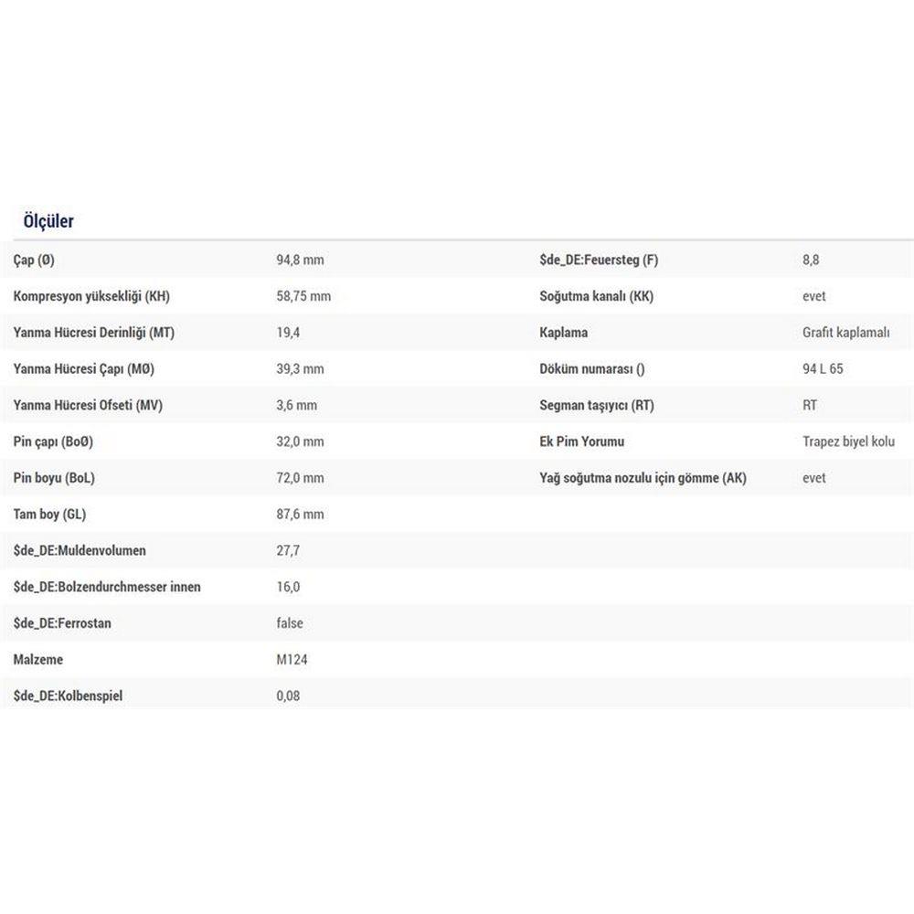 PISTON SEGMAN DUCATO BOXER JUMPER MASTER MOVANO IVECO DAILY 2,8TD SOFIM (94,80MM) / (0,40 FARKLI) <