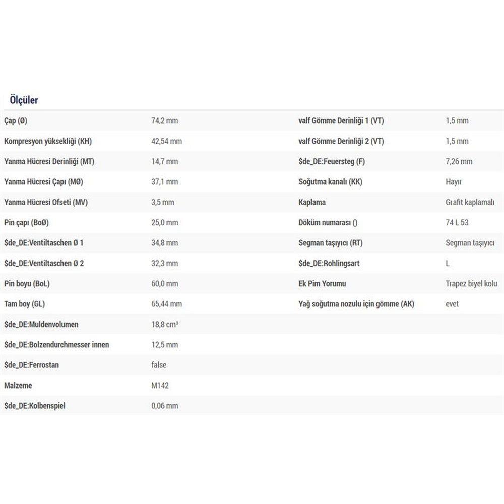 PISTON SEGMAN P107 P1007 P206 P307 BIPPER NEMO C1 C2 C3 DV4TD (1,4HDI 8V) FORD FIESTA 1,4TDCI (73,70