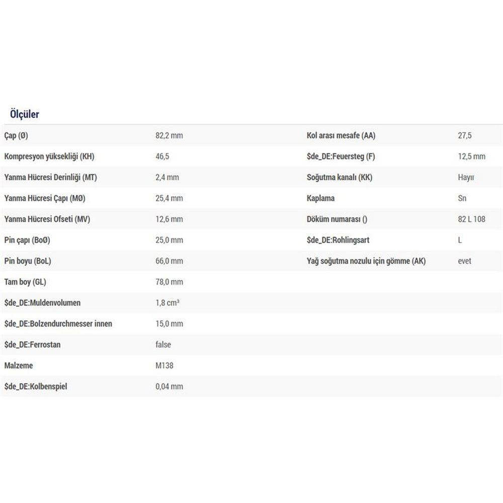 PISTON SEGMAN TAKIM PARTNER SCUDO BERLINGO EXPERT JUMPY DW8 / DW8B (82,20MM) / (STD) / ( 0,20 KISA)
