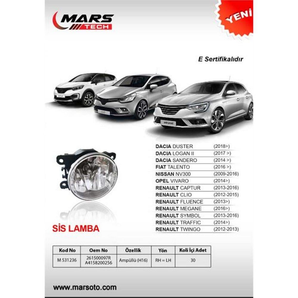 Ürün Kodu: MARS 531236 Marka: MARS OEM Liste: 261500097R - A4158200256 Eşdeğer Liste: AEM35 1522